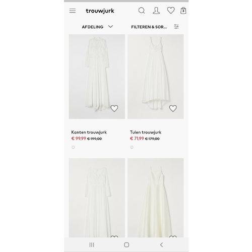 Geen echte trouwjurk maar hij past binnen je budget, is in de sale en is wit met kant en satijn!