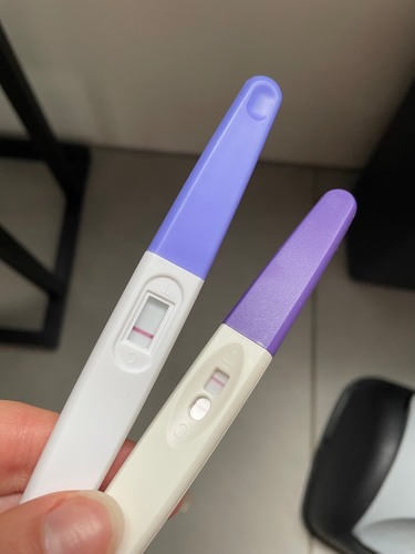 Dit was 3 weken na mijn MA. Links is een zwangerschapstest, en rechts een o ...