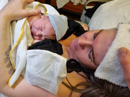 Ik heb evt foto's van mijn bevalling (keizersnede) en na mijn bevalling van mijn lichaam (striae, litteken, loshangend vel) en mijn zoontje ernaast.