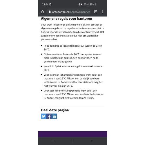 Ik kan je vraag niet beantwoorden, maar volgens mij werken ze niet volgens de Arno richtlijnen. Volgens mij mag het op een werkplek helemaal niet zo warm zijn.
