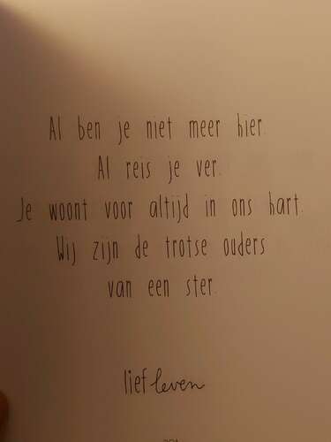Geen gedicht dat er naar verwijst bij ons omdat ik het geboortekaartje toch positief wil houden en niet overduidelijk aan dat verdriet wil binden.