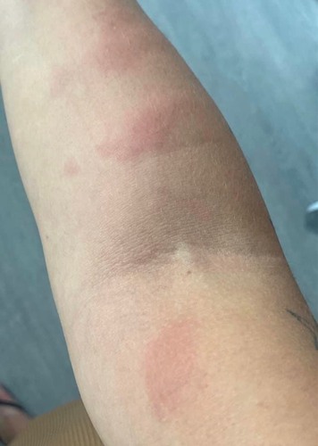 Vlekken op m’n arm waren met een dag verdwenen maar die zagen er ook anders uit dan deze foto. Als ik dit morgen nog heb dan even naar de huisarts.