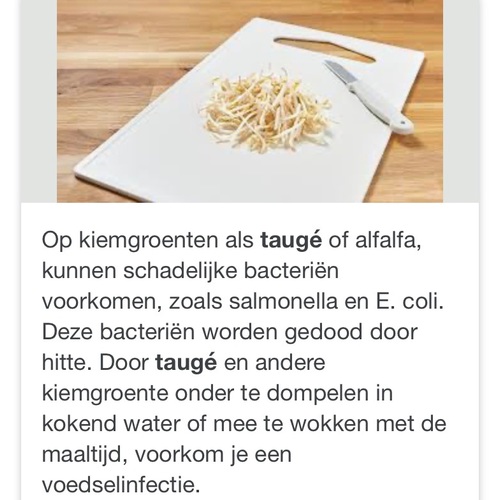 Verhit de kiemgroenten voor gebruik even kort bij temperaturen boven de tachtig graden.
