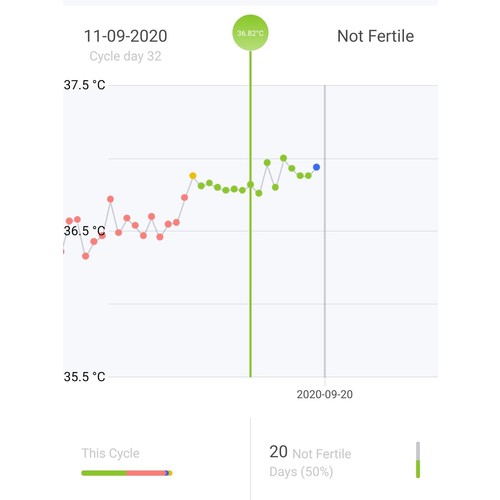 Ik heb basis temperatuur van 36,5. Dus als ik 37,5 heb voel ik me ziek. Laatst was hij 36,2 in de ochtend, maar maak me er geen zorgen om, ik voel vanzelf wanneer ik me niet lekker voel 😊.