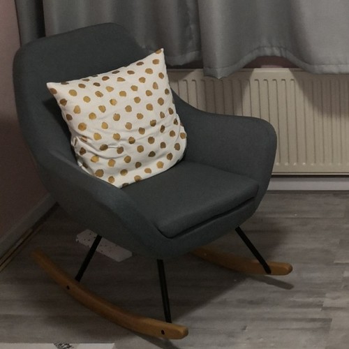 In de winkel (Baby-Dump) zat deze heerlijk, maar ik vond deze stoel v茅茅l te duur. Toen heeft m'n man 'm stiekem als verrassing gekocht. Toch wel heel erg fijn, want het is echt de lekkerste stoel waar ik ooit ingezeten heb. En de kat slaapt er ook vaak in, dus plezier voor iedereen.