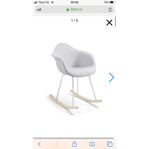 Ik ben aan het wacht op mijn bestelling van Leenbakker. 106 euro dacht ik. Indien die niet goed zit gaan we die van Quax kopen, rocking chair. Deze foto is leenbakker.