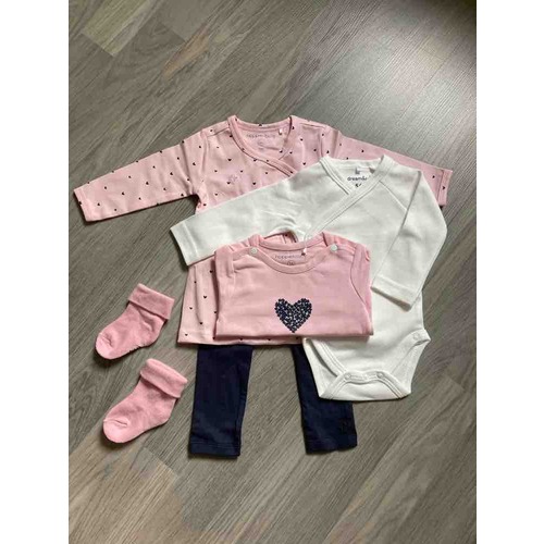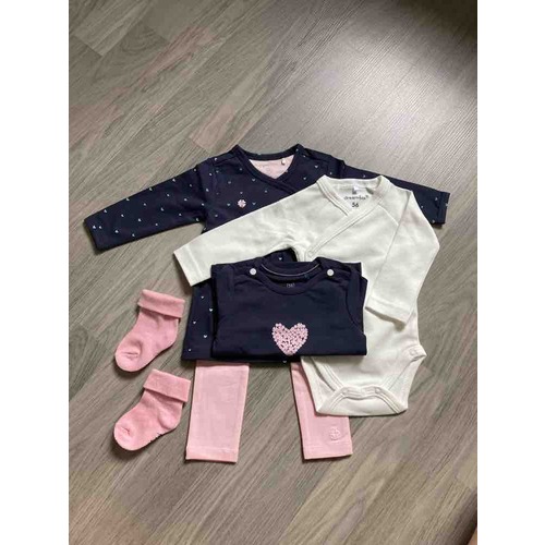 Ik heb in de kraamweek samen met de kraamverzorgster alles in maat 50/56 uit de kast gehaald. Vanaf dag 1 had ze 62 aan.