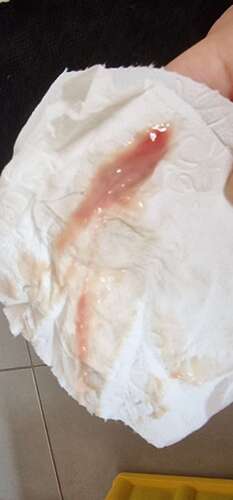 1e keer verloor ik hem tijdens de bevalling zelf. 2e keer kwam hij mee toen de ballon uitviel. Maar dat op jouw wc papier vind ik niet op de slijmprop lijken. Wellicht een deeltje ervan, dit is meer gewoon afscheiding met wat bloed