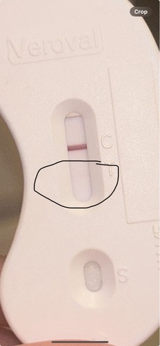 Hier is echt een super super super licht streepje! ik heb overigens wel een “Urineweg infectie” test gedaan ook een zelftest.. en deze was overigens wel positief, de bijsluiter van de zelftest chlamydia gaf aan dat je die test niet mag doen bij zwangerschap, menstruatie en urineweginfecties, ik neem aan dat dit de test kan verstoren anders stond het daar niet voor niks natuurlijk, maar het maakt me wel echt zorgen