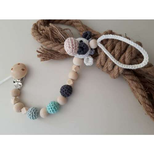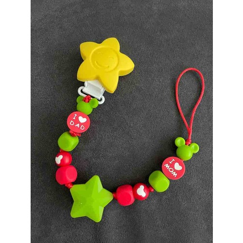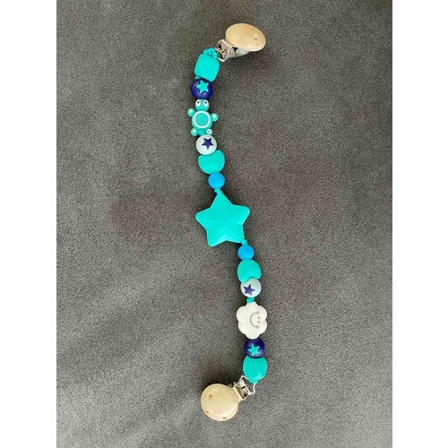 Dit is de laatste nieuwe speenkoord. Alleen het sterrenclipje zou ik een gewoon doen voor een baby (mijn zoontje is al groot genoeg). Daar moeten voor de veiligheid gaatjes in zijn en deze knijpt ook niet zo goed.