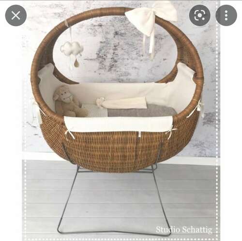 Andere model wieg, die waarin ik zelf gelegen heb, maar denk wel hetzelfde soort spul. Ik heb het laten doen en dat werd erg mooi. Kostte ook niet de hoofdprijs, dus daarvoor had ik geen zin om het zelf te doen. Leek me ook niet zo gezond tijdens een zwangerschap.