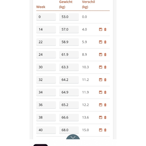 Ik begon op 67,5 kilo en einde zwangerschap 75 kilo, na de zwangerschap (na een week) 63 kilo maar nu alweer 2 kilo aangekomen door al het snoepen wat ik doe 🙈