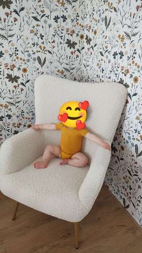 Wij hebben die in een teddy stof! Zowel mijn vriend als ik vinden hem lekker zitten (en mijn vriend is met zijn 1.90m best lang 😉). We moeten nog gaan ervaren of het ook een fijne stoel is om te voeden, maar denk dat je dan wel een (voedings)kussen nodig hebt voor de ondersteuning. Rug- en armleuning is niet per se hoog, maar wat ons betreft helemaal prima