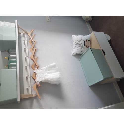 Hier ook een klein kamertje. Voor baby/peuterkleertjes en beddengoed (tot circa 2 jaar) had ik genoeg ruimte aan alleen de commode... Baby sliep bij ons op de kamer tot 6 maanden. Ik vond een stoel in de babykamer super fijn. Als er veel visite was beneden kon ik me met voeden even terugtrekken op het kamertje.
