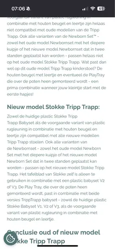 Onderaan de tripp trapp staat een code waaraan je kunt zien of het een nieuw of oud model is. Bij een nieuw model kan je alle accessoires nog kopen en bij de oude modellen dan moet je de accessoires ook van marktplaats halen.