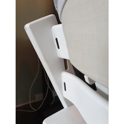 De huidige Stokke® Baby Set™ en Newborn Set™ zijn compatibel met alle Tripp Trapp® stoelen die vanaf mei 2003 geproduceerd zijn. U kunt zulke stoelen herkennen aan serienummers beginnend met een 3 of hoger. Het serienummer en de productiedatum staan op de onderkant van de stoel gedrukt. Als u deze informatie niet op uw Tripp Trapp ® stoel aantreft, kunt u ook de afstand tussen de twee rugleuningen meten: vóór mei 2003 was dit ca. 2,5 cm, terwijl bij stoelen vanaf mei 2003 de afstand ongeveer. 3,5 cm is. Stoelen die geproduceerd zijn vóór mei 2003 zijn niet compatibel met de huidige ® Baby Set ™ en de Newborn Set ™. Eerdere modellen van de Baby Set ™, met houten beugel, zijn niet langer beschikbaar.