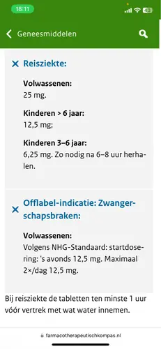 Sorry ik zie dit berichtje nu pas. Uiteindelijk werkte het voor mij het beste om smorgens (of het liefst als ik bijv rond 5 uur even wakker was) een half pilletje te nemen. Die raakte dan in de middag wel uitgewerkt, maar door de lage dosis was ik niet zo moe als bij een hele pil. Soms nam ik dan ‘s middags opnieuw een halve pil. Zo lukte het goed om de hele misselijke dagen door te komen. Zodra de misselijkheid minder werd ben ik wel meteen gestopt met de pillen, want het wordt op alle officiele sites niet aangeraden om het te lang te gebruiken. En vond het zelf ook geen fijn idee dat de baby er toch wel iets van moet meekrijgen ook…!