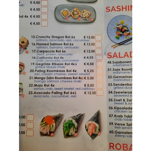 Ik kreeg laatst een boekje van de sushitent hier. Heb er ff foto's van gema ...