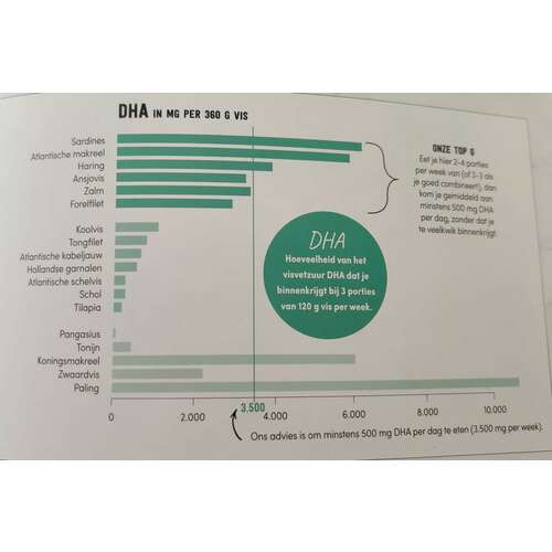 Het is 360 gram per week om aan je behoefte te komen. Dus 3 x pw 120 gram (1 haring?) is voldoende.