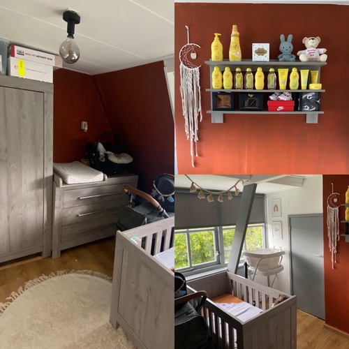 Leuk ...wij hebben heel zachtroze muren en muisgrijze vloerbedekking en verder ook grijze accenten.
