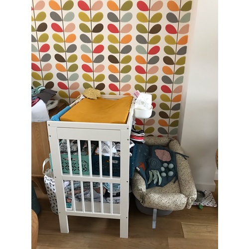 Ik heb een mandje waar ik verschoondoekjes, reserve kleding,luiers en het opgevouwen matje in heb. Kan ik zo alles pakken. Nu heb ik dat mandje in de kast staan dus je ziet er veder niks van