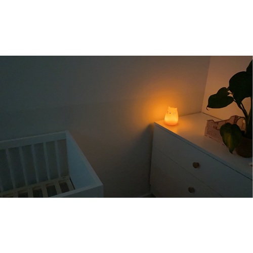 Dit nachtlampje is 1 van onze beste aankopen ever! Mooie retro lamp met dimbaar zachte (kaars) licht. Zo zacht of fel als je wil. Is van de Ikea
