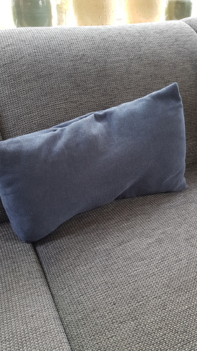 Ik kan, sinds mijn eerste zwangerschap, niet meer zonder zo'n kussentje. Thuis zit ik altijs met zo'n kussentje in mijn rug op de bank of in de fauteuil. Als ik zwanger ben, neem ik hem mee met vakantie, uit eten, of een verjaardag. Zodat ik fijn kan zitten. Ik vind het niet prettig als een stoel te ver achterover "hangt", want dan trekt ie aan mijn buikspieren. Gewoon langwerpig sierkussentje van action of Xenos.