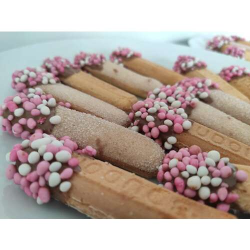 Heel simpel, lange vingers gedipt in gesmolten chocolade en dan door de mui ...