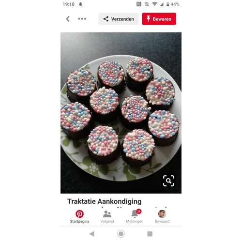 Dit was een geslaagde traktatie bij de bekendmaking van mijn zwangerschap op werk. Soezen stukje eraf en dan muisjes erover. Makkelijk te maken en ik vind ze heerlijk😊