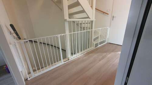 Wij hebben het zo opgelost, een traphek van babydan met een spijl eruit gehouden en hierbij tiewraps gedaan voor extra stevigheid. De trap naar zolder hebben we ook een spijl uitgehaald, maar staat nog niet op de oude foto.
