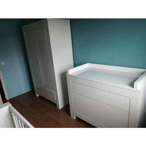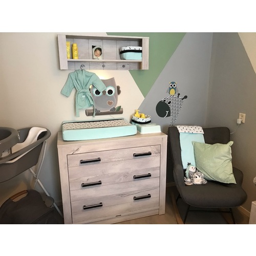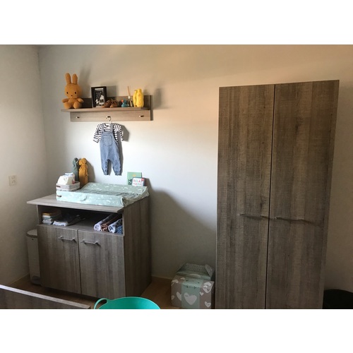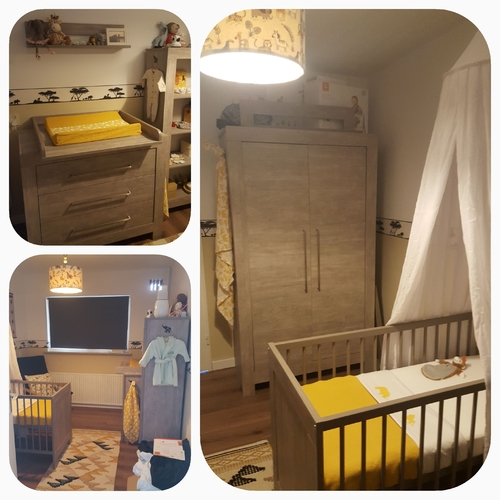 Wij hebben dezelfde babymeubels. In 2015 aangeschaft voor m'n eerste zoontje. Van het baby bed een peuter bed gemaakt na 2 jaar en nu na bijna 5 jaar weer veranderd in een baby bedje. Kwaliteit van de kamer is echt goed. Kan er nu met m'n tweede kindje weer mee doen. Hier ook met monturen en grijs gecombineerd 😍