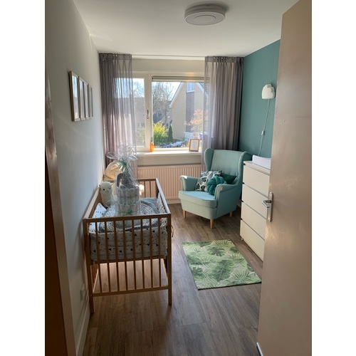 Wij zijn nog maar heel kort zwanger, maar voor onze zwangerschap wisten we al dat t thema jungle word. Een muur met een mooi behangetje van een amsterdams merk. En de rest wat groen en geel accenten. Kan prima voor allebei ♥️