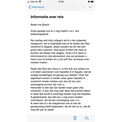 Ik heb er voor gekozen om dit risico niet te nemen. Via de reisverzekering is alles terugbetaald en daarna een vakantie naar Fuerteventura geboekt. We hebben een heerlijke vakantie gehad!