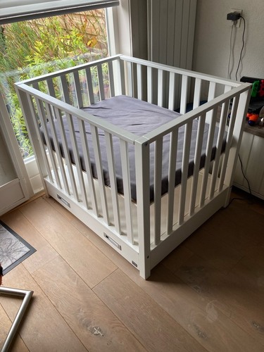 Ik verkoop onze box! Een hele mooie, in goede staat, met lade onderin. Inclusief boxmatras, kunststof speelkleed, 2 moltons en 2 hoeslakens.