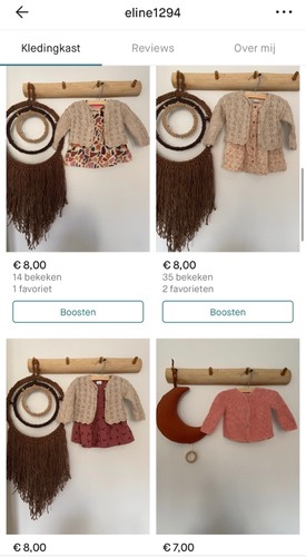 https://www.vinted.nl/member/36809169-annick240291 voornamelijk meisjeskleding tot maat 86. Enkele uitschieters. Aantal nieuwe artikelen met prijskaartje.