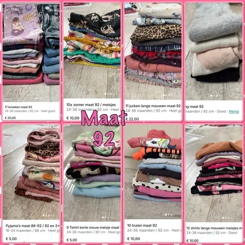 Kledingbundels voor meisjes vandaag op Vinted gezet. Maat 92.