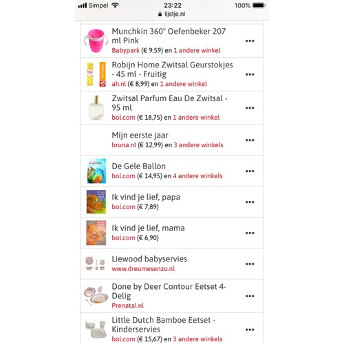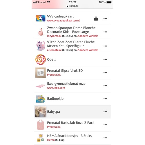 Dit lijstje is met het zicht op een eventuele babyshower (mocht ik die niet krijgen, dan koop ik alsnog e.e.a. zelf) en voor kraamcadeaus in verschillende prijsklassen.