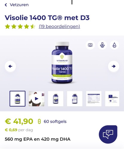 @TS: Volgens mij heeft Vitakruid hele goede kwaliteit visolie maar let er wel op dat aan deze capsules ook vit D is toegevoegd. Check even of dit niet ook al in je multivitamine of foliumzuur zit!