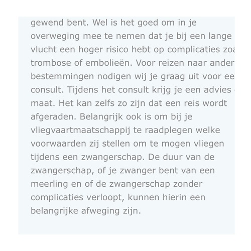 Ik zou dan even bellen naar de KLM Health services en vragen wat zij aanraden. (Ook als je met een andere maatschappij vliegt kunnen zij jou adviseren).
