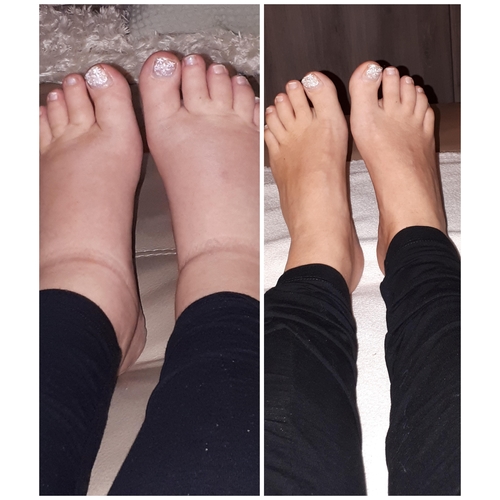 Voeten toen ik zwanger was en tweede foto kort na de bevalling 😅