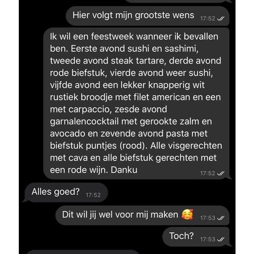 Waar heb je het meeste zin in om te eten als je straks bent bevallen. Hier naast dat je sommige dingen nu niet “mag”, heb ik zwangerschapsdiabetes dus mijn lijstje wordt steeds langer 🙈. Ben benieuwd naar jullie wensen🤗