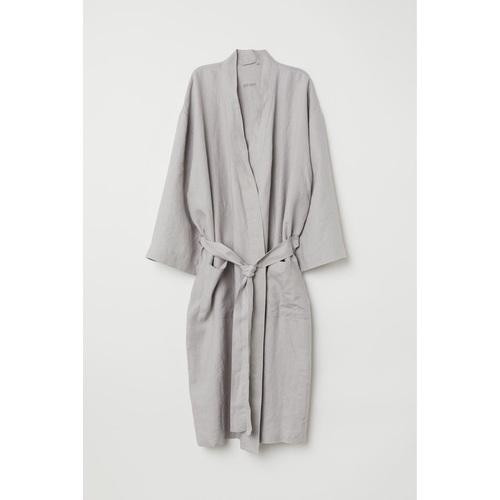 Ik heb deze dunne ochtendjas van gewassen linnen besteld om nog iets aan en te kunnen doen tijdens en na de bevalling. Niet heet en dacht wel handig dat ie gemakkelijk aan en uit en open en dicht kan.. en vind m sowieso leuk