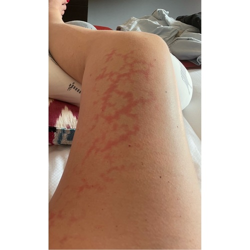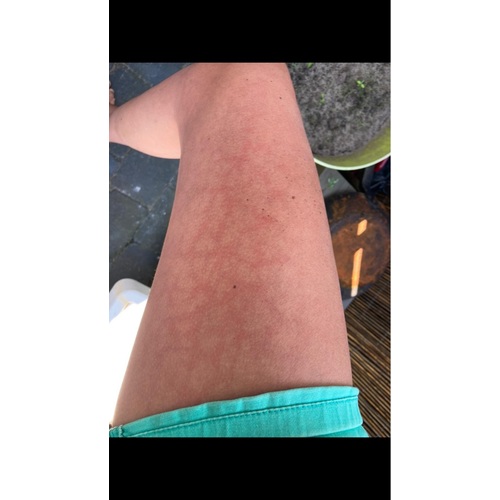 Iemand inmiddels al duidelijkheid over wat dit kan zijn? Bij mij is het vandaag ontstaan door de warmte. Ik had een zwarte broek aan en heb met m’n benen in de zon gezeten. Bovenbeen werd erg warm. Nu allemaal rode lijnen, heb al koud/warm (wissel) gedoucht en lig al lang met m’n voeten en benen omhoog, maar nog geen verbetering. Iemand een idee wat het kan zijn?