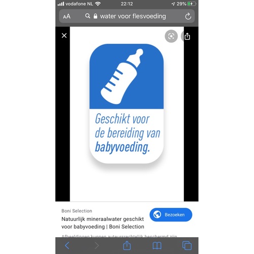 Wat de kraamzorg nu adviseert is koud water uit de kraan en dat opwarmen daar zitten de minste bacteriën in!