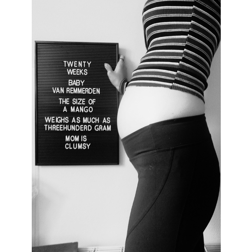 Ik ben iets meer dan 16 weken, en nog geen enkele foto genomen om eerlijk te zijn. Denk dat ik wel eens een foto/een paar foto’s zal nemen van zodra het een echte babybuik is (mijn buik is nu nog steeds hetzelfde zoals voor ik zwanger was), maar wekelijks niet.