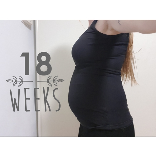 Ik maak ze ook gewoon van mezelf, wel steeds met dezelfde outfit aan en elke week op zelfde dag en rond hetzelfde tijdstip. Zoals dit (18 wkn foto) maar dan met hoofd (met een camera ervoor, dat dan weer wel).