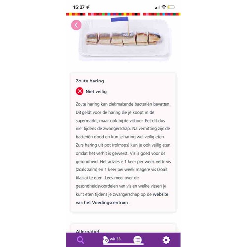 Geen haring is het advies. Zwangerhap is een betrouwbare app die ik vaak ra ...