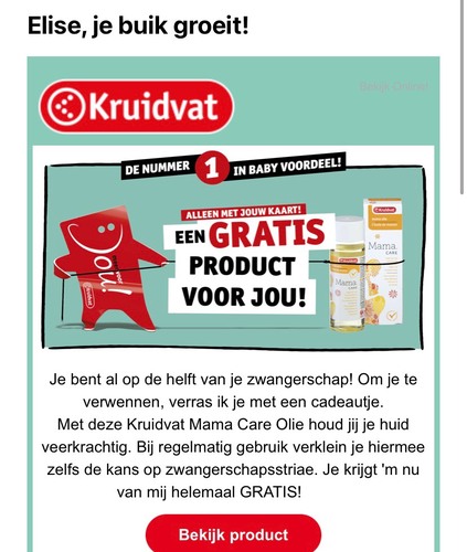 Via de Kruidvat site kan je je aanmelden voor de “baby voordeel club” en dan kun je ook een welkomsttas ophalen.