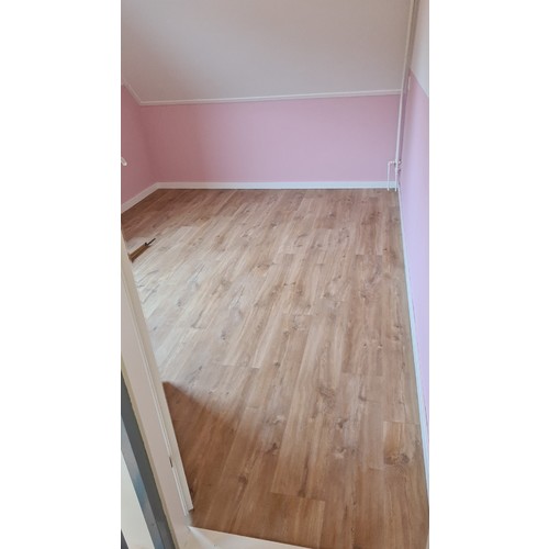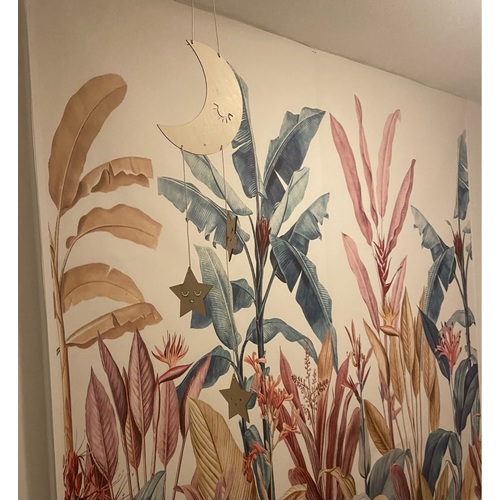 Dit is de mengverf genaamd lieverd (Histor) met behang Indra van de Karwei voor onze dreumes van 16 maanden. Ze is gek op het behang, dat moet elke dag even worden geaaid!