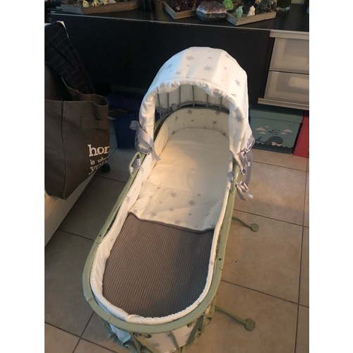 Wij gaan de oude wieg gebruiken waar mijn vriend ook in heeft gelegen. Hebben een nieuw matrasje en hoeslakens gekocht en een stof gekocht waarvan zijn tante de bekleding opnieuw gaat maken. Lakens en dekentjes hebben we gewoon in de winkel nieuwe gekocht. Heb nog geen foto want ze gaat de bekleding volgend weekend maken, zal daarna een foto posten 👍